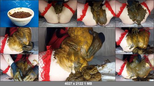 I love eating shit In this clip, I put a plate full of shit and at first slowly enjoyed its smell and taste, and then impatiently swallowed it), pushing a mouthful of shit and swallowing it all). I was so excited by the process of eating shit that I shoved a big poo into my pussy and fuck myself with a dildo, and then finished the rest of the shit with even more pleasure. In this video, a surprise awaits you I was so excited about the shootings that I continued to masturbate when I finished shooting the clip, and I did not turn off the camera. What came of it, see for yourself.