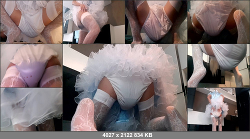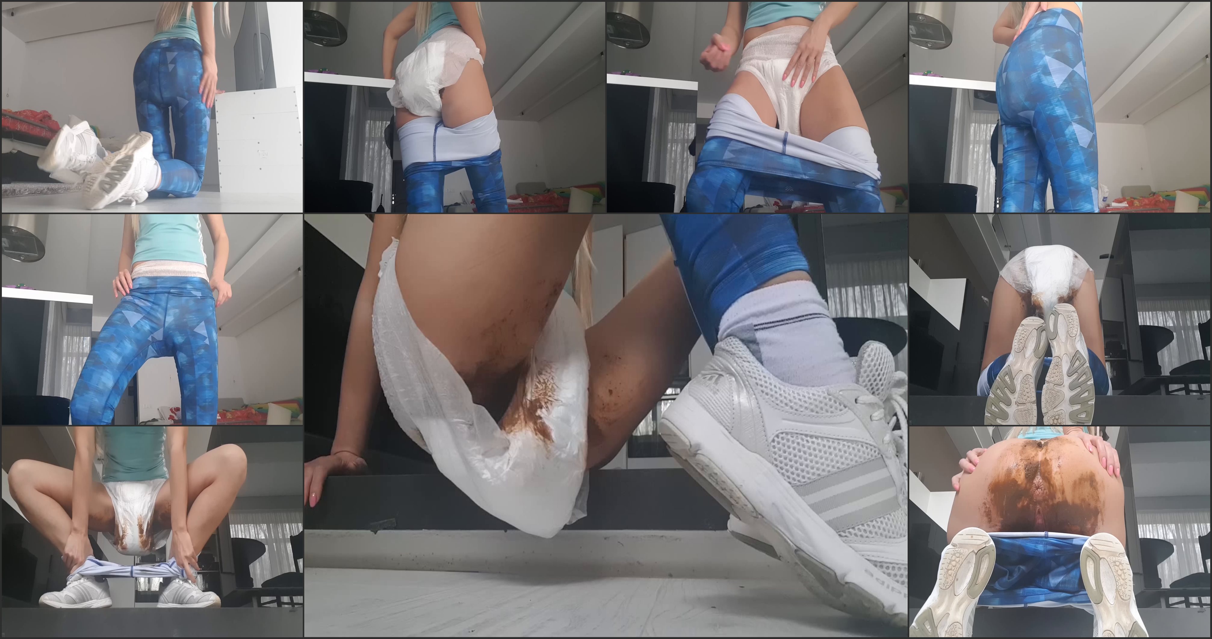 Goddess is pooping in her cute diaper a lot of messy shit,wearing plastic panties,but still not enough place for huge shit,she is teasing you with messy ass,giving her legs to clean and ordering you to fuck her messy ass and cum on dirty diaper and plastic panties.